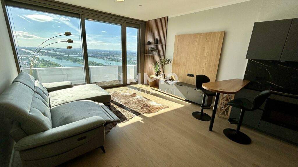 Möbliertes Apartment im 42. Stock mit Weitblick auf die Donau! Pool, Spa und Fitness inklusive!
