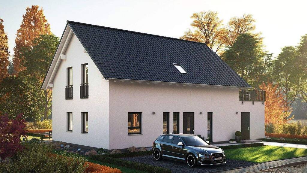 - massa Bodenplatte (Wohn- oder Nutzkeller optional gegen Aufpreis möglich) - massa Freiraum = Wohnraumhöhe 2,75 m serienmäßig - Rollläden für alle Fenster ohne Aufpreis + moderne Haustüre zur Auswahl - mineralischer Struktur-Außenputz weiß mit Endputz / zwei- oder mehrfarbig optional - Aluminium Außenfensterbänke - Pfettendach - Dacheindeckung + Dachrinne und Fallrohre aus Zink - inklusive Architektenleistungen (Genehmigungsplanung und Bauantrag) - Luft-Wasser-Wärmepumpe (deutscher Markenhersteller) inkl. Fußbodenheizung - PV- Anlage inkl. Batteriespeicher - Kontrollierte Be- und Entlüftungsanlage für perfektes Wohlfühlklima inkl. Wärmerückgewinnung - Elektropaket Ausbauhaus inkl. Installation (deutscher Markenhersteller) - Materiallieferung Dämmung und Beplankung - Rohinstallation Sanitär für alle Bäder und für die Küche