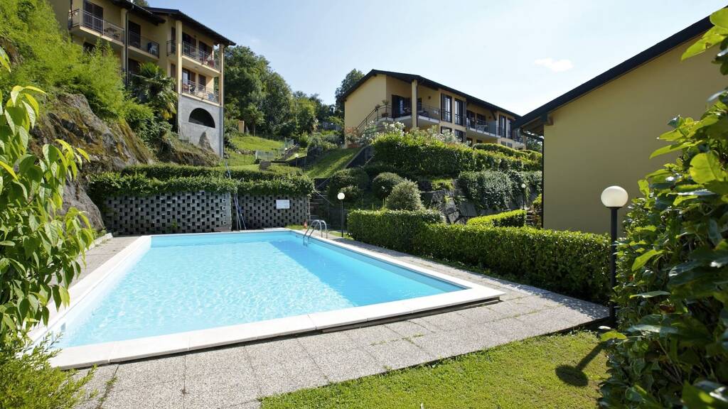 Jede Wohnung verfügt über zwei Balkone und über eine wunderschöne Sicht auf den See, die Inseln von Brissago und die Berge. Parken können Sie Ihren PKW auf den Autoabstellplätzen