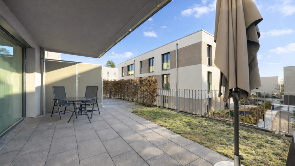 Ein echtes Highlight ist die überdachte Terrasse mit angrenzendem ca. 70 m² großen privaten Garten - Ihr persönlicher Rückzugsort direkt vor der Tür.