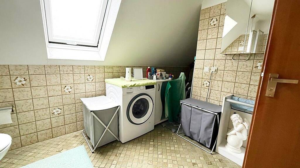 Die Wohnung liegt in einem sehr gepflegten Einfamilienhaus und ist als sog. Einliegerwohnung im 1. OG (DG) konzipiert und verfügt über einen eigenen Eingang. Das Vermieterehepaar möchte gerne an eine alleinstehende Dame oder Herrn (gerne aus einem Sozialberuf) vermieten. Der großzügige Wohnbereich ist hell und einladend und bietet direkten Zugang zu einem sonnigen Balkon, der zum Entspannen einlädt. Die Küche ist funktional gestaltet und verfügt über ausreichend Stauraum für Küchenutensilien. Das Schlafzimmer überzeugt durch seine angenehme Größe und die ruhige Lage. Das Badezimmer ist mit einer Badewanne ausgestattet und bietet Platz für eine Waschmaschine und Trockner. Der Spitzbogen kann mit einer elektrisch ausfahrbaren Leiter begangen werden und bietet ausreichend Stauraum.
