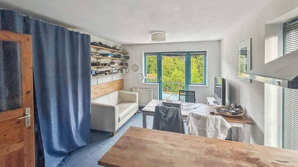 Über den zentralen Flur gelangen Sie in die einzelnen Räume der Wohnung. Der großzügige Wohnbereich mit angrenzender Küche bietet ausreichend Platz für gemütliche Stunden und geselliges Beisammensein. Von hier aus genießen Sie einen herrlichen Blick auf den angrenzenden Wald - ein echtes Highlight, das Ruhe und Naturverbundenheit vermittelt. Direkt nebenan befindet sich ein weiteres Zimmer, das sich flexibel als Schlafzimmer, Büro oder Gästezimmer nutzen lässt. Ein Badezimmer mit Duschbadewanne rundet die Etage ab.