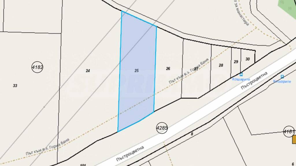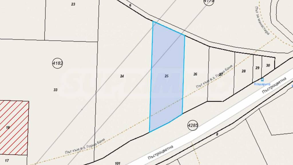 Wir präsentieren exklusiv ein Grundstück in der Straße "Pastrotsvetna" im Wohngebiet Gorna Banya, Bezirk Bruso-Kozarnitsi.