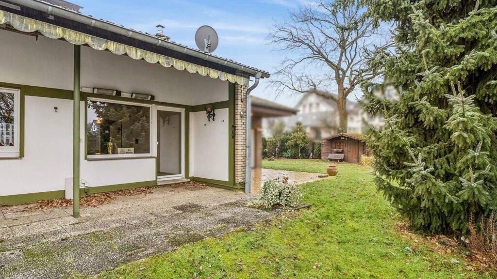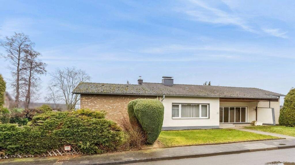 In einem schönen und ruhigen Wohngebiet von Merode präsentiert sich dieser gepflegte Bungalow aus ca. dem Baujahr 1968 als ein Zuhause mit besonderem Wohlfühlcharakter. Bereits der überdachte Eingangsbereich mit seiner großen Glasfront in Süd-Ost-Ausrichtung empfängt Sie hell und einladend und vermittelt sofort das Gefühl von Großzügigkeit und Offenheit.