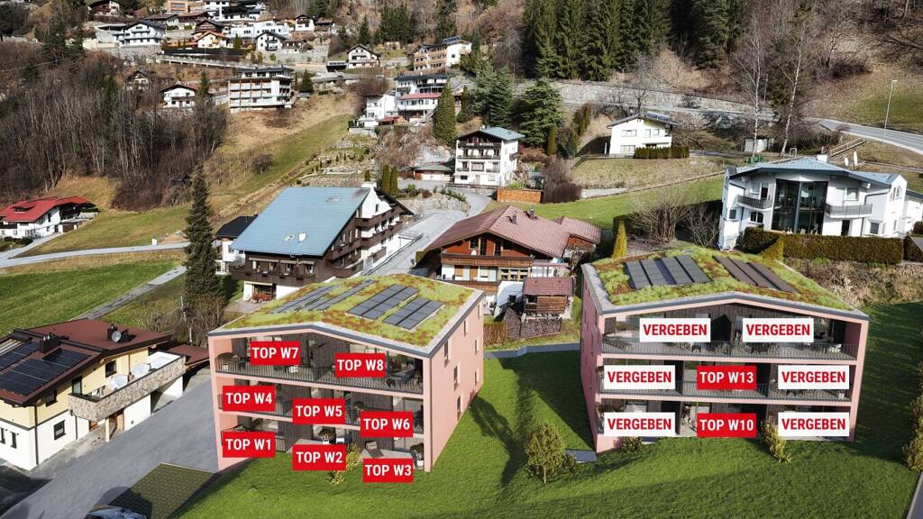 In Oetz entsteht ein hochwertiges Wohnbauprojekt mit 16 modernen Einheiten, verteilt auf zwei harmonisch ins Ortsbild eingebettete Gebäude. Die Architektur kombiniert traditionelle Elemente wie Satteldächer und Holzakzente mit zeitgemäßem Wohnkomfort.