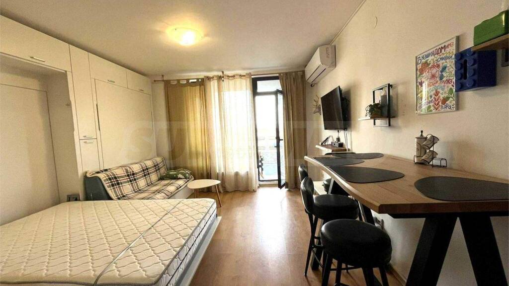 Wir präsentieren ein stilvoll eingerichtetes Studio, das Komfort und Funktionalität in einem Raum vereint und sich sowohl für den persönlichen Gebrauch als auch als Kapitalanlage eignet.