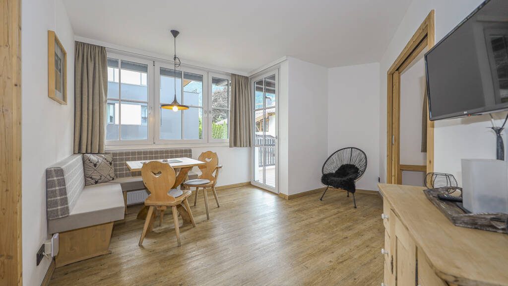 ZUR WOHNUNG TOP 6: Die Wohnung befindet sich im 1. Obergeschoss des Hauses, ist hochwertig ausgestattet und komplett möbliert und teilt sich auf in einen geräumigen Eingangsbereich, einer Gäste-Toilette, zwei Schlafzimmer, einem komfortablen Badezimmer sowie dem Wohn- und Essbereich und einer separaten Küche. Vom Wohn- und Essbereich gelangt an auf eine ca. 13,6 m² große Terrasse. Von der Wohnung hat man einen schönen Ausblick auf den Hahnenkamm und dank der südwestlichen Ausrichtung fast den ganzen Tag Sonne.