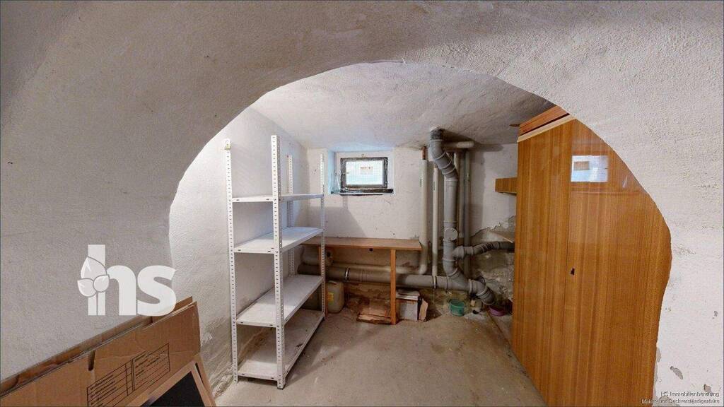 Das Gebäude stammt aus dem Jahr 1950 und wurde 1996 umfassend saniert, einschließlich Dach, Fenster, Elektrik und Sanitäranlagen. Die massive Bauweise sorgt für eine solide Bausubstanz. Ein Kellerraum bietet zusätzliche Abstellfläche, ein Stellplatz im Freien ist der Wohnung zugeordnet.