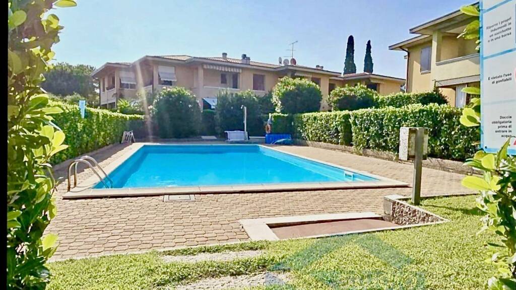 Eingebettet in ein Wohnumfeld mit Swimmingpool, in der Gegend von Desenzano del Garda, bieten wir zum Verkauf eine Wohnung im Erdgeschoss an, die auf drei Seiten frei ist und über einen großen Wohnbereich verfügt, der aus einem Wohnzimmer und einer offenen Küche besteht, mit direktem Zugang zum privater Garten von 100 m2.