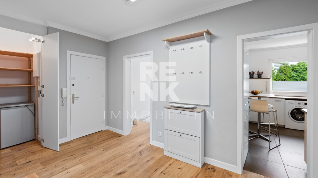 Das Badezimmer begeistert mit zeitgemäßem Design, Handtuchheizkörper und einer komfortablen Regendusche. Auch die Einbauküche wurde 2020 komplett erneuert und bietet mit Gasherd, Geschirrspülmaschine sowie Waschmaschine und stilvollem Fliesenboden eine moderne Ausstattung.