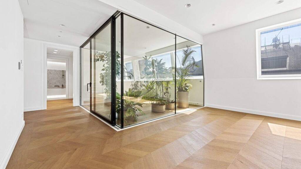 Die Wohnung vereint Großzügigkeit, Eleganz und modernste Ausstattung: Zwei Schlafzimmer mit luxuriösen en-suite Bädern, ein Masterbedroom mit Ankleide und Bad mit freistehender Wanne, sowie ein weitläufiger Wohn- und Essbereich mit offener Küche und angrenzendem Wintergarten.