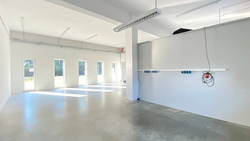 Die Einheit ist ein autarkes Gebäude und umfasst eine großzügige Bürofläche im ersten Stockwerk mit etwa 200 m² Nutzfläche und insgesamt 9 abgetrennten Räumen, welche durch die Leichtbauweise auch flexibel einteilbar sind. Auch hier sorgt eine moderne WC-Anlage für den nötigen Komfort. Diese Fläche kann zudem mit einer angrenzenden Produktionsfläche im Erdgeschoss kombiniert werden, was weitere Synergien schafft. Für Produktions- oder Lagerzwecke eignet sich die ebenerdige Fläche besonders. Mit ca. 207 m² Nutzfläche bietet sie ausreichend Platz für Kleinfertigungen, Lagerung oder ähnliche Tätigkeiten. Teile dieser Fläche sind klimatisiert, was sie ideal für temperaturempfindliche Arbeiten oder Lagerungen macht. Mitarbeiterstellplätze sind ebenfalls reichlich vorhanden.
