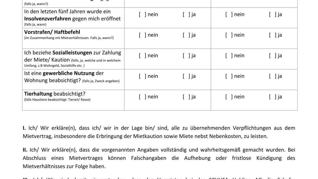 Besichtigungen können erst nach Vorlage einer Mieter-Selbstauskunft (Formular beiliegend) und Vorlage aussagekräftiger Unterlagen (Schufa-Auskunft, Lohnabrechnung, etc.) vereinbart werden. Wir bitten die Unterlagen an folgende E-Mail-Adresse zu senden: martina.erber@koeppl.de