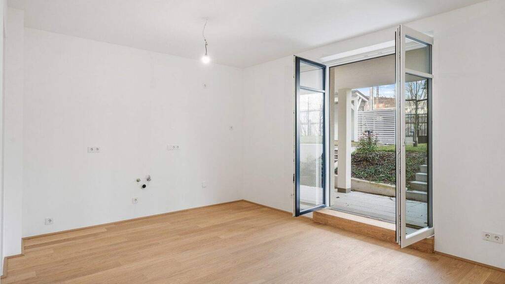 Diese exklusive 2 Zimmer Gartenwohnung ist gänzlich nach Nordosten ausgerichtet und hat sowohl vom Schlafzimmer als auch von der Wohnküche aus einen direkten Zugang zu einem ca. 102 m² Eigengarten, inkl. ca. 12,5 m² Terrasse. Ein Gartenzaum kann gerne auf Wunsch errichtet werden.