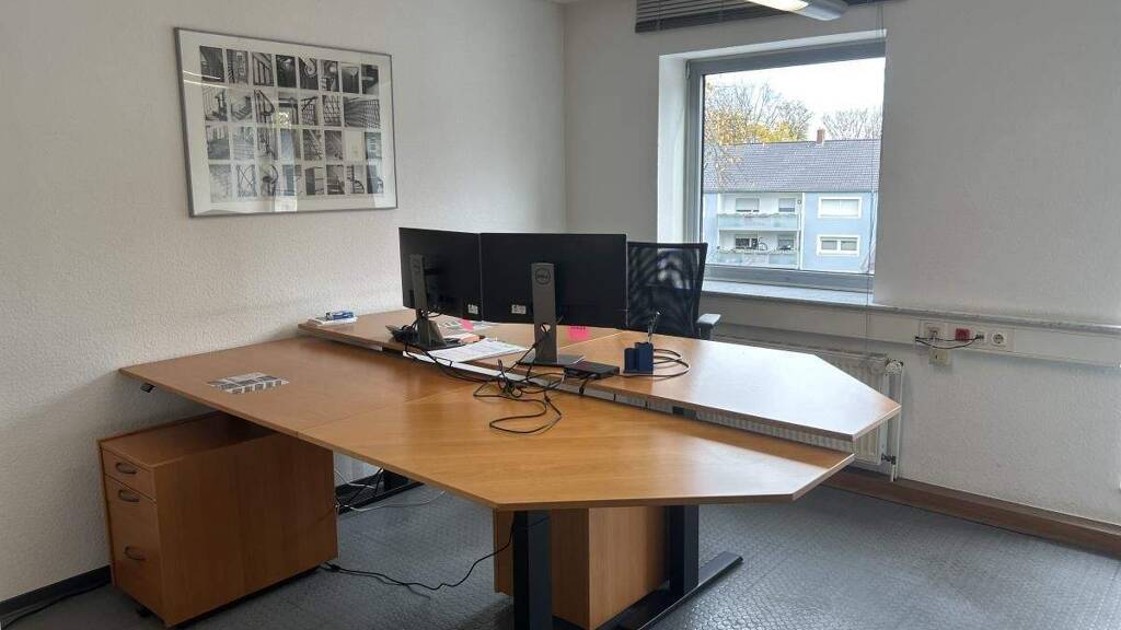 Im rückwärtigen Bereich des Grundstücks befindet sich das Bürogebäude. Im Erdgeschoss stehen moderne Meeting- bzw. Schulungsräume zur Verfügung. Das 1. Obergeschoss ist als großzügige, offene Bürofläche gestaltet und bietet damit maximale Flexibilität für individuelle Raumkonzepte. Eine ähnliche Einteilung findet sich im ausgebauten Dachgeschoss wieder.