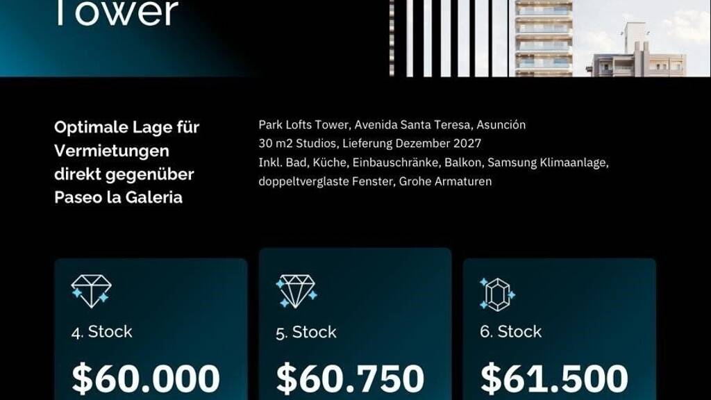 Dieses Neubauprojekt bietet eine seltene Gelegenheit, in eine der exklusivsten Wohnadressen Paraguays zu investieren. Mit attraktiven Einstiegspreisen, hochwertiger Ausstattung, hotelähnlichen Services und einer Lage inmitten des wirtschaftlichen und gesellschaftlichen Zentrums von Asunción ist es sowohl für Eigennutzer als auch für Investoren ideal.
