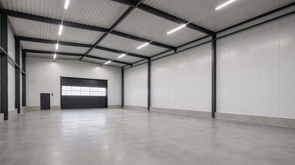 Die Halle soll über eine Innenhöhe von ca. 4 m verfügen, was auch den Einsatz höherer Regalsysteme oder technischer Einrichtungen erlaubt.