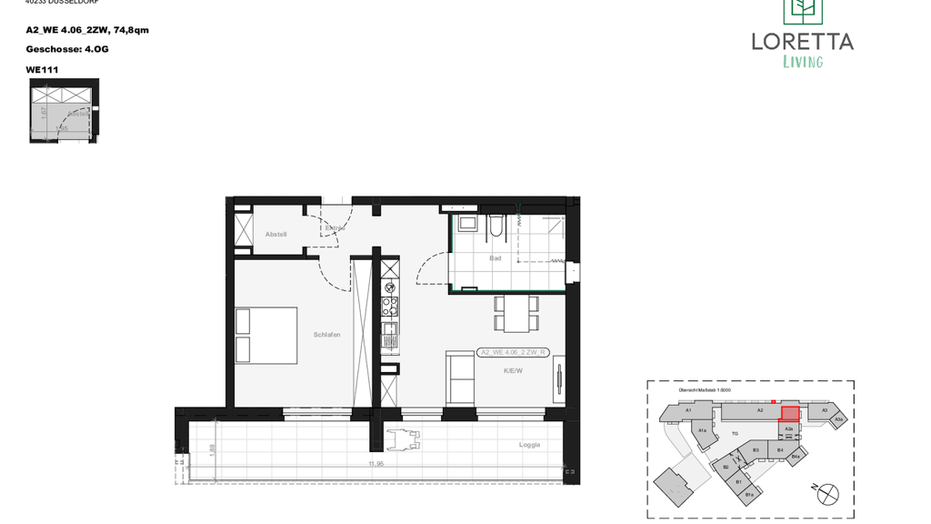 Willkommen bei Loretta Living - einem modernen Wohnensemble in zentraler Lage von Düsseldorf, das urbanes Lebensgefühl mit naturnahem Wohnen verbindet. Das Gebäude­ensemble bestehend aus einem fünf- und einem vier­­geschossigen Bau­körper verkörpert modernes, komfortables Wohnen und bietet eine vielfältige Auswahl an durchdachten Grundrissen - ideal für Singles, Paare und Familien. Jede Wohnung überzeugt durch helle, offene Räume, Fußbodenheizung, eine moderne Einbauküche sowie Fenster mit Dreifachverglasung und erhöhtem Schallschutz. Besondere Highlights sind die privaten Außenbereiche: Alle Einheiten verfügen über einen Balkon, eine Loggia oder eine Terrasse mit Blick auf begrünte Innenhöfe - ideal zum Entspannen. Dank Aufzügen, stufenlosem Zugang und durchdachtem Design ist Loretta Living für jede Lebensphase geeignet.