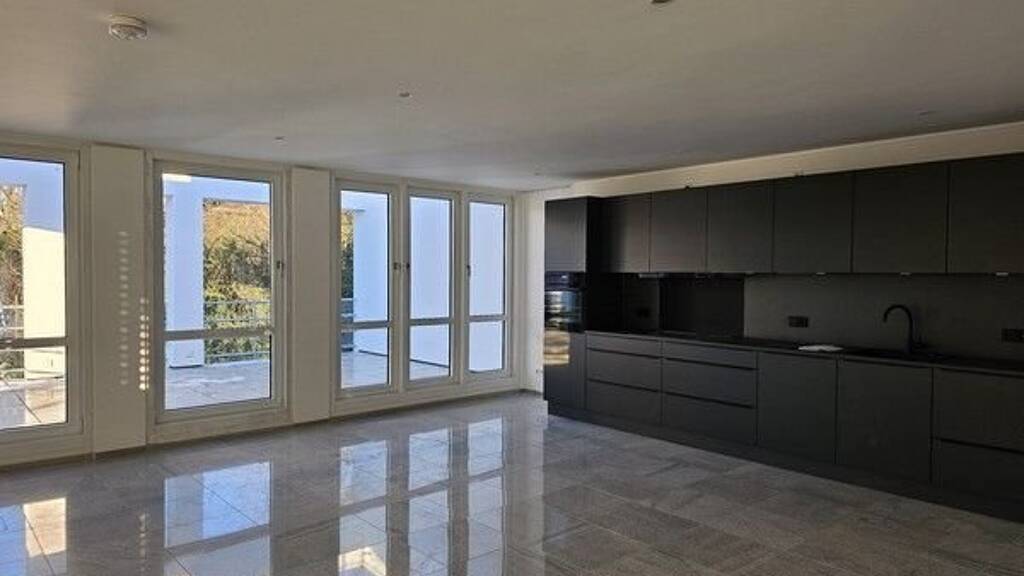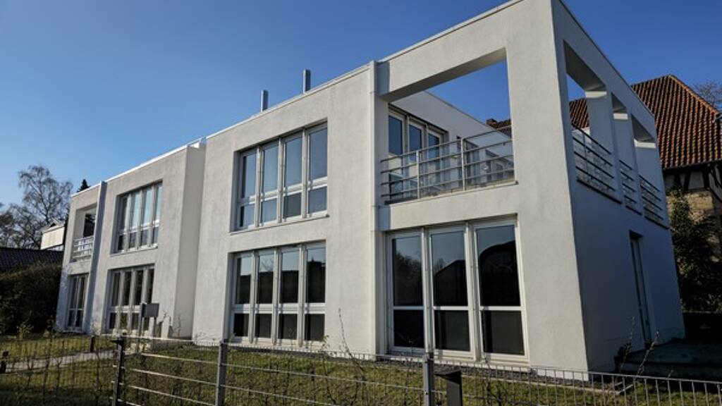 Gediegenes Wohndomzil mit klaren architektonischen Linien: Die Immobilie mit drei Einheiten sieht nach einer Komplettrenovierung / Sanierung einer neuen Nutzung entgegen. Die Wohnung im Obergeschoss verfügt über einen Wohnen-/Essen-/Küchenbereich (Nolte-Einbau-küche mit AEG-Geräten (Induktionsherd)), ein Schlafzimmer mit Ankleide, ein Bad (mit Waschmaschinenanschluss), ein Gäste-WC, Flur, Hauswirtschaftsraum sowie zwei Dachterrassen (West- oder Ostausrichtung) und ein ca. 90 m² großes Rooftop auf dem Flachdach des Hauses. Die Ausstattung ist hochwertig und exklusiv. Heller Granitboden, Einbauschränke, Deckenspots, elektronische Außenbeschattung, Fußbodenheizung (Wärmepumpe).