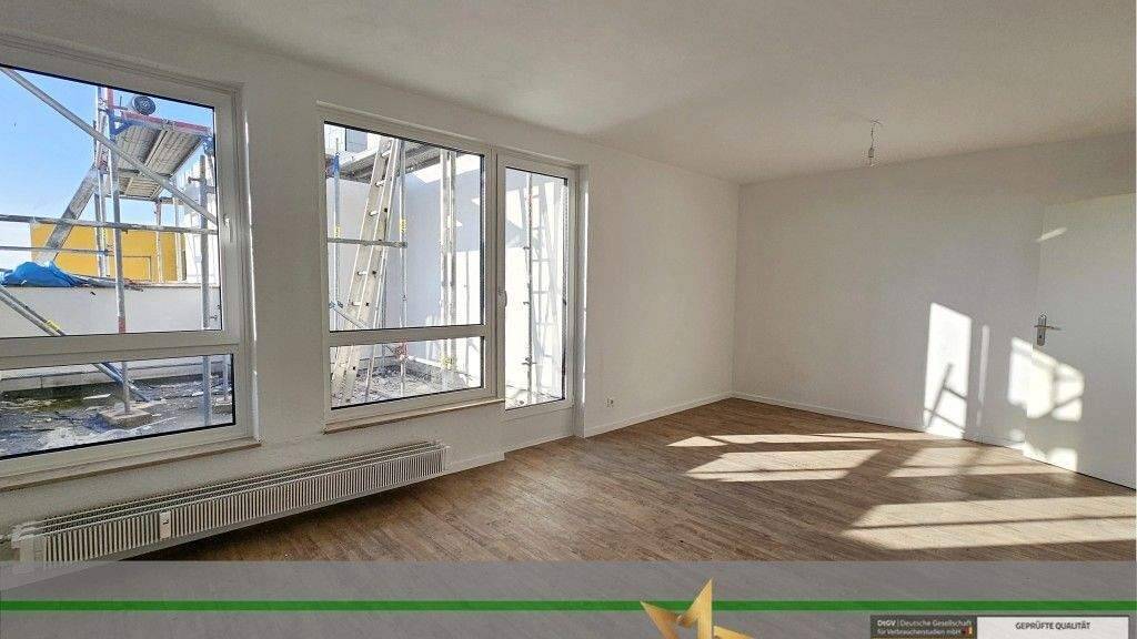 Ihre neue Wohnung befindet sich im 4. Obergeschoss des Hauses und bietet auf 72 m² Wohnfläche eine ideale Aufteilung. Sie erreichen die Wohnung bequem mit dem Aufzug bis zur Wohnungsetage. Es erwarten Sie lichtdurchflutete Räume mit großen Fensterelementen im Wohn- Esszimmer und in der Küche. Vom Wohn- und Esszimmer sowie von der Küche ist jeweils eine XXL-Terrasse zu begehen. Die zwei Terrassen bieten Ihnen einen phantastischen Freisitz, steigen den Wohnwert und erweitern Ihre Wohnfläche an Sommertagen. Das Schlafzimmer ist geräumig geschnitten, auch große Kleiderschränke können hier gut eingebracht werden. Der zweite Schlafraum präsentiert sich als kleinster Raum, eignet sich als Homeofficeraum oder bietet einem Kind einen eigenen Lebensbereich. Der Dielenbereich verfügt über einen großen Einbauschrank und könnte hervorragend auch als Garderobe genutzt werden. Das Badezimmer erstrahlt in neuem Glanz mit mattgrauer Verfliesung an Wand und Boden, ausgestattet mit Badewanne, Waschtisch und Fenster für die gute Belüftung. Das WC ist separat, zeigt sich in gleicher Wandverfliesung wie das Badezimmer und ist ausgestattet mit WC und Handwaschbecken.