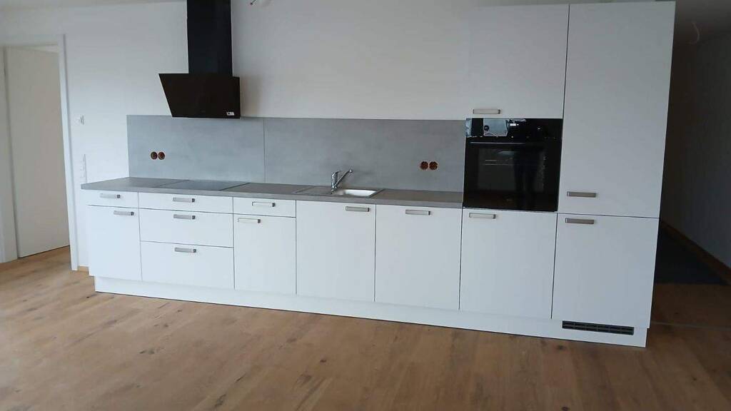 Es handelt sich um eine 4-Zimmerwohnung mit einem Elternschlafzimmer, einem Kinderzimmer, einem Arbeitszimmer, einem Bad, einem Gäste WC und einer offenen Küche mit Wohn-/Esszimmer. Besonders eindrucksvoll ist das große Wohn- und Esszimmer. Der angrenzende Balkon bietet eine gute Aussicht. Durch mehrere große Fenster ist die Wohnung mit viel Tageslicht ausgestattet. Das Bad enthält eine hochwertige bodentiefe Dusche.
