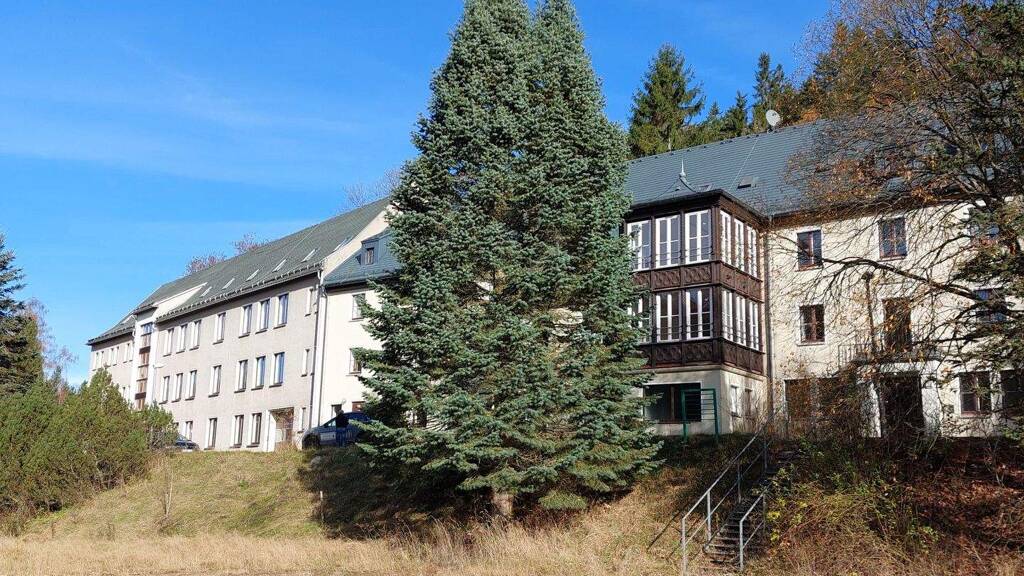 Auf der Liegenschaft befinden sich ein 3-geschossiges, teilweise unterkellertes Verwaltungsgebäude, Internatsgebäude, Schulungsräume, Sozialräume, Werkstatträume, ein ehemaliges Benzinlagergebäude und ein großer Parkplatz mit 3 Garagen. Sanierungen und Modernisierungen sind erforderlich. Die Liegenschaft wurde bis zum April 2023 genutzt und steht seitdem leer. Es erfolgt derzeit noch eine Frostfreihaltung (Beheizung) der Gebäude. Es sind Feuchtigkeitsschäden im Dachgeschoss durch partiell undichte Dacheindeckung (wetterabhängig) in kleinen Bereichen erkennbar. Insgesamt ist der Bauzustand der Gebäude als befriedigend einzuschätzen. Nach Auskunft der Gemeinde Muldenhammer erscheint die Umnutzung der Liegenschaft grundsätzlich möglich.