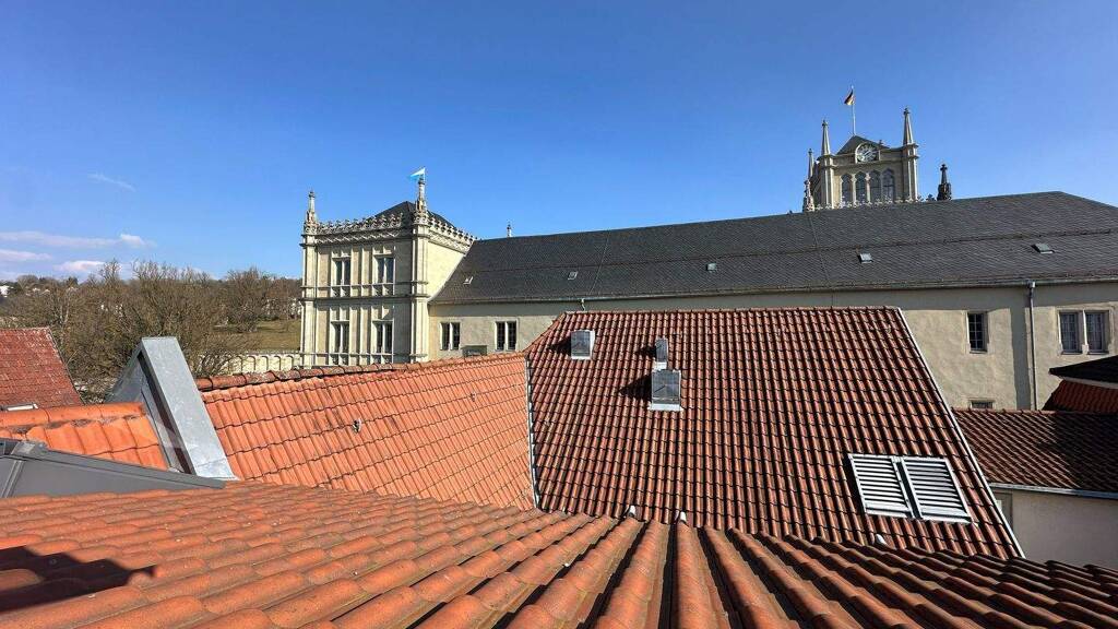 Mitten in der historischen Innenstadt von Coburg befindet sich diese großzügige, moderne Studiowohnung mit besonderem Flair. Sie liegt im obersten Geschoss eines charmanten Gebäudes, das bereits im Jahr 1700 erstmals urkundlich erwähnt wurde. Das Haus mit seinem markanten Zwerchgiebel wurde im Laufe der Jahre verantwortungsvoll erweitert und modernisiert und verbindet heute historischen Charakter mit zeitgemäßem Wohnkomfort. Über die Einfahrt unter dem Hauptflügel gelangt man in den ruhigen Innenhof des Anwesens.