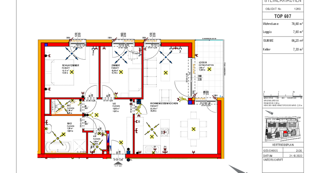 Die OÖ Wohnbau hat in Steinerkirchen an der Traun eine mehrgeschoßige Wohnanlage bestehend aus insgesamt 7 Wohnhäusern mit 78 Wohneinheiten errichtet. Im Zuge des letzten Bauabschnitts erfolgte nun die Fertigstellung von 14 Mietwohnungen (Haus 5) und 18 Eigentumswohnungen oder Mietwohnungen mit Kaufoption (Haus 6+7). Die Wohnanlage liegt südöstlich des Ortszentrums von Steinerkirchen, in fußläufiger Entfernung vom Ortskern mit Kirche und Gemeindezentrum sowie Infrastruktur des täglichen Bedarfes. In unmittelbarer Nähe befinden sich auch die Volksschule und die Hauptschule sowie der örtliche Sportplatz. Die Wohnungen der Häuser 6 und 7 bieten eine ausgewogene Mischung an Wohnungsgrößen (ca. 54m² - 76m²) mit zwei oder drei Zimmern. Sämtliche Wohnungen sind barrierefrei erreichbar und entsprechen den Grundsätzen des anpassbaren Wohnbaus. Wohn- und Schlafräume sind vorwiegend nach Südosten oder Südwesten ausgerichtet. Jeder Wohneinheit ist eine Freifläche in Form einer Loggia oder einer Terrasse zugeordnet. Die Erdgeschoßwohnungen verfügen darüber hinaus über einen zugeordneten Eigengarten. In der gemeinsamen Tiefgarage steht jeder Wohnung ein KFZ-Abstellplatz zur Verfügung. Zusätzlich sind oberirdisch noch weitere Parkplätze vorgesehen. Auch Fahrradabstellräume befinden sich in der Tiefgarage. Im Allgemeinbereich befindet sich ein Kinderspielplatz mit Spielgeräten und Sandkiste. Die Fassade wird mit einem Wärmedämmverbundsystem in hellen Farbtönen ausgeführt.