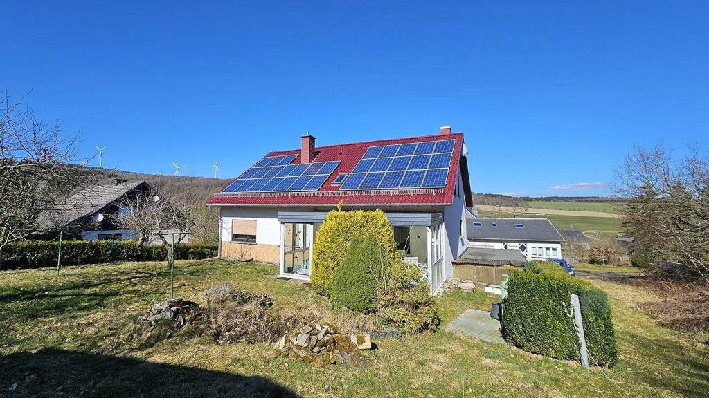 Dieses Einfamilienhaus vereint höchsten Wohnkomfort mit naturnahem Leben in idyllischer Ruhe. Ein großzügiges Grundstück, umgeben von malerischer Natur und weitläufigen Grünflächen, vermittelt ein angenehmes Umfeld. Hochwertige Materialien wie edler Marmor und stilvolle Parkettfußböden unterstreichen das anspruchsvolle Wohnambiente. Das Einfamilienhaus ist großzügig geschnitten und erstreckt sich neben dem Untergeschoss über zwei Etagen - das Ober- und Dachgeschoss. Dank der durchdachten Raumaufteilung ist es sowohl als klassisches Einfamilienhaus als auch als Zweifamilienhaus nutzbar. Obergeschoss: Hier befindet sich eine voll ausgestattete Küche, ein modernes Badezimmer sowie ein geräumiges Wohnzimmer. Das absolute Highlight ist der lichtdurchflutete Wintergarten, der mit seiner behaglichen Atmosphäre ganzjährig zum Entspannen einlädt. Zusätzlich gibt es Schlafzimmer, die sich ideal als Eltern- und Kinderzimmer oder als Arbeitsräume nutzen lassen. Dachgeschoss: Auch diese Etage verfügt über eine eigene Küche und ein Badezimmer, was eine unabhängige Nutzung ermöglicht. Ein weiteres Wohnzimmer sowie zusätzliche Schlafräume bieten flexible Gestaltungsmöglichkeiten - ideal für eine zweite Familie, Gäste oder als separate Wohneinheit. Das Haus eignet sich daher sowohl für große Familien als auch für Mehrgenerationenwohnen. Die neuwertige, gedämmte Dacheindeckung mit integrierter Photovoltaikanlage sorgt für Energieeffizienz und Nachhaltigkeit. Sie besitzt noch eine ca. 11-jährige Einspeisevergütung. Dies bedeutet für den neuen Eigentümer eine langfristige Einnahmequelle durch die Einspeisung des erzeugten Stroms ins öffentliche Netz. Ein besonderes Paradies bietet das Anwesen auch für Pferdeliebhaber: Zwei Hektar Koppel und eine eigene Stallung schaffen ideale Bedingungen für die artgerechte Haltung und einen naturverbundenen Lebensstil. Ein Zuhause für alle, die Wert auf Qualität, Ruhe und eine enge Verbindung zur Natur legen.