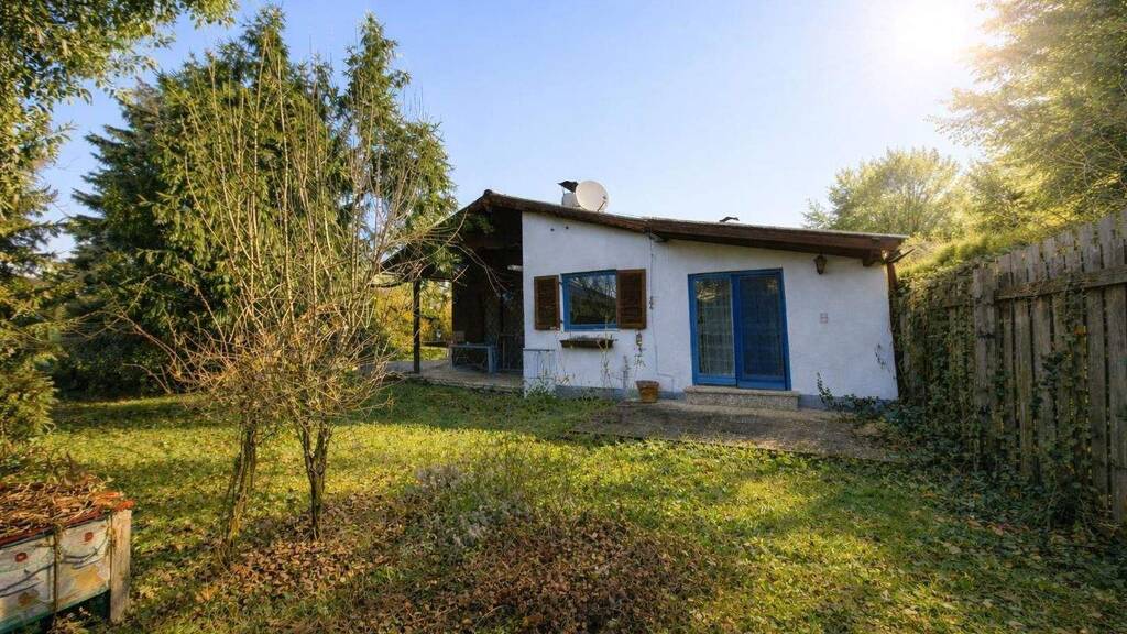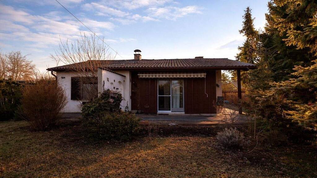 Zum Verkauf kommt dieses gemütliche Einfamilienhaus in Ruhelage mit ca. 92 m² Wohnfläche zzgl. 2 Terrassen auf einem 660m² Mietgrundstück. Die Mietbedingungen dürfen als optimal angesehen werden, die Mietkosten für das Grundstück betragen nur ca. 240 €/Monat und der derzeitige Vertrag läuft bis 12/2040. Vermieterin ist die Gemeinde Steinbrunn die bisher die Verträge immer wieder um 20 Jahre verlängert hat. Eine Hauptwohnsitzmeldung ist hier gestattet.