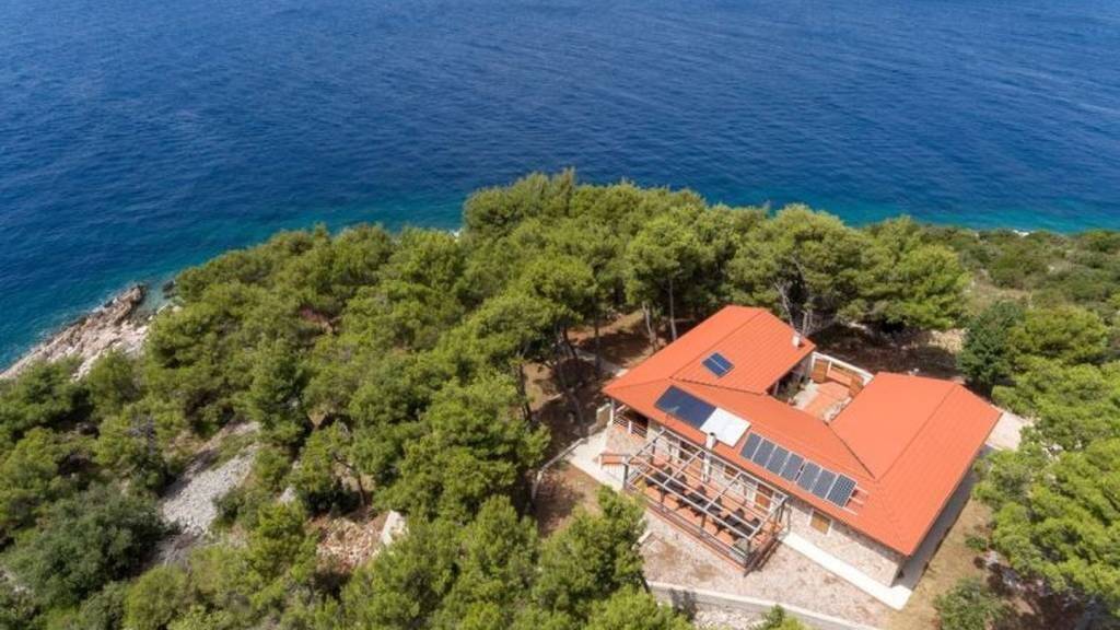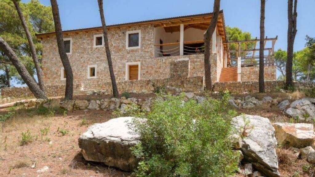 Schöne Steinvilla zum Verkauf, in einer abgelegenen Gegend, nur 20 m vom kristallklaren Meer und dem schönen Strand entfernt, auf einer der Inseln in der Nähe von Trogir. Die Villa wurde 2012 aus massiven Steinblöcken erbaut, hat eine Gesamtfläche von 308 m2, ist voll möbliert und mit hochwertigen Geräten ausgestattet und verfügt sowohl über eine Fußboden- als auch eine Wandheizung, sodass sie im Winter genutzt werden kann. Die Villa besteht aus einem geräumigen Wohnzimmer mit Kamin. Voll ausgestattete Küchen mit Essbereich und vier Schlafzimmern, jedes mit eigenem Bad. Das Wohnzimmer hat Zugang zu einer geräumigen Terrasse mit Blick auf das Meer. Im Innenhof der Villa gibt es einen Steingrill, eine überdachte Terrasse mit Esszimmer und eine Taverne. Das Grundstück ist von einer Steinmauer umgeben, die dem Eigentümer absolute Privatsphäre bietet. Infrastruktur: Zufahrtsstraße, Strom, Wasser, Klärgrube.