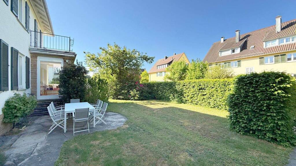 Das lichtdurchflutete, nach Südwesten ausgerichtete Objekt befindet sich in einer der begehrtesten Lagen von Sillenbuch. Das Einfamilienhaus wurde 1935 erbaut und im Jahr 2015 hochwertig saniert. Die Modernisierung erfolgte stilsicher unter Verwendung hochwertiger Materialien. Die Raumaufteilung ist klassisch und bietet einer Familie mit Kindern das ideale Zuhause. Im Erdgeschoss befinden sich der Eingangsbereich, das Gäste-WC, ein separates Apartment, die offene Einbauküche (insbesondere mit zwei vollwertigen Öfen inkl. Dampfgarfunktion, zwei Waschbecken und die Möglichkeit, an der Kücheninsel zu sitzen) sowie der großzügige Wohn- und Essbereich; sowohl von der Küche als auch über den Essbereich gibt es Zugang auf zwei Terrassen, von denen man in den Garten gelangt. Im Obergeschoss stehen Ihnen drei Schlafzimmer, zwei Badezimmer mit Tageslicht (eines davon mit Sauna) und ein separates WC zur Verfügung. Das Dachgeschoss bzw. die Bühne dient zu Lagerzwecken. Die Böden sind mit Holzdielen/Parkett versehen; in den Bädern wurden Fliesen verwendet. Ein weiterer Pluspunkt stellt der großzügige Kellerbereich (inkl. Weinkeller) dar. Die Auffahrt zum Gebäude vermittelt Großzügigkeit und unterstreicht die Exklusivität dieser Immobilie!