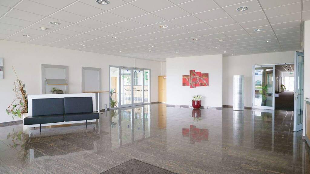 Das großzügige Foyer mit einladenden Empfangsbereich beeindruckt Besucher sowie Geschäftspartner und vermittelt unverzüglich das Gefühl von Professionalität und Stil.