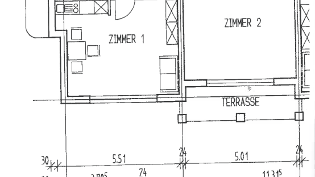 Die Wohnung besteht aus einem geräumigen Wohn-/Schlafzimmer, einem ausgestatteten Badezimmer und einer separaten Ess- und Wohnbereich mit Einbauküche. Der Bodenbelag aus hochwertigem Laminat verleiht den Räumen eine warme und einladende Atmosphäre.