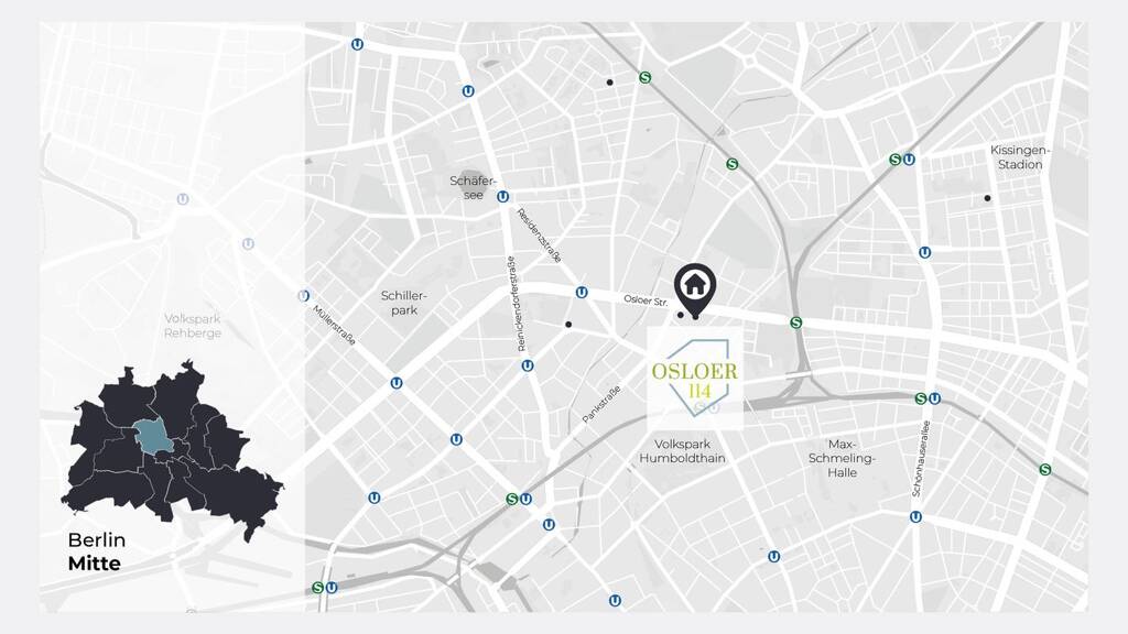 Die Osloer Straße 114 liegt zwischen dem U-Bahnhof Osloer Straße und dem S-Bahnhof Bornholmer Straße, dem einstigen Grenzübergang zwischen West- und Ostberlin. Nicht nur der multikulturelle Charakter und Charme machen den Standort aus.