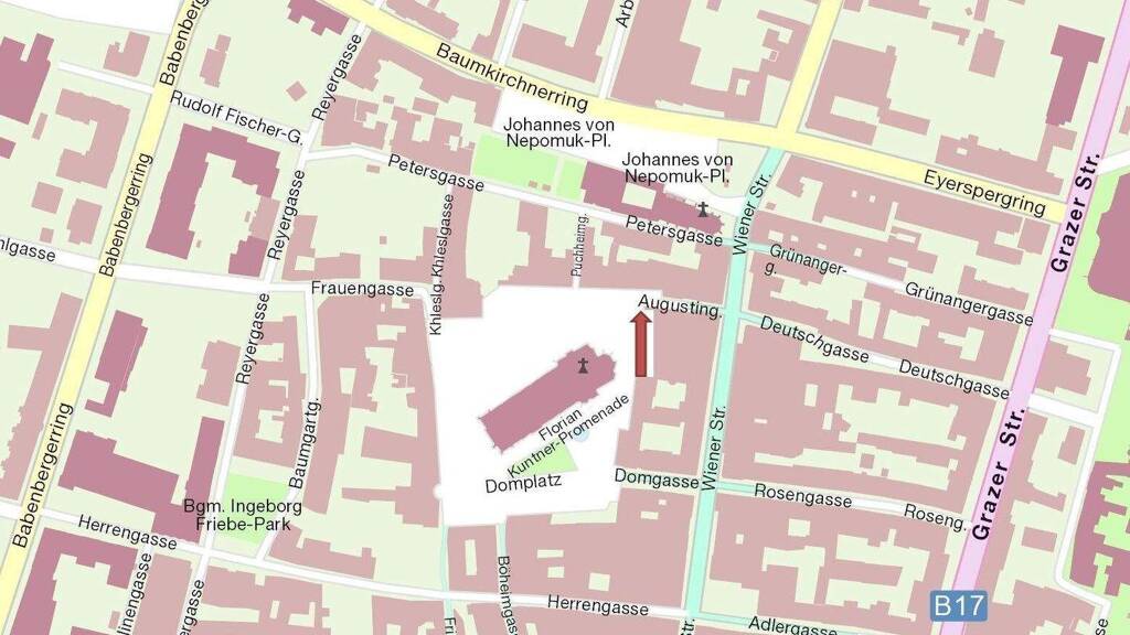 Lage und Infrastruktur Die gute Lage, direkt beim Domplatz, und die Umgebung mit zahlreichen Cafés und Geschäften ist ein großes Highlight dieses Anwesens. Die Nähe zum FH Campus der Fachhochschule Wiener Neustadt und zum Landesklinikum Wiener Neustadt sorgt für viel Frequenz und ist fußläufig erreichbar.