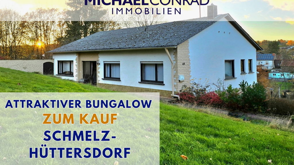Entdecken Sie diese charmante Bungalow-Immobilie im idyllischen Schmelzer Ortsteil Hüttersdorf. Dieses renovierungsbedürftige Haus bietet mit einer Wohnfläche von ca. 128 m² und einem großzügigen Grundstück von 1.956 m² viel Platz für Ihre individuellen Gestaltungsideen.