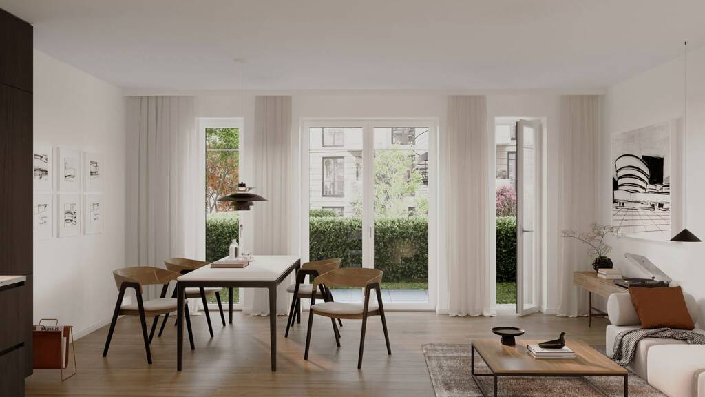 Die Objekte überzeugen mit einer klaren, modernen Architektursprache: Geradlinige Formen, helle Fassaden und großzügige Fensterflächen schaffen ein offenes, freundliches Erscheinungsbild. Jede Einheit verfügt über einen Balkon oder eine Terrasse mit Garten.