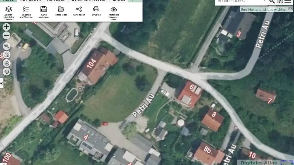 Das Grundstück grenzt an den kleinen Petersbach, was den naturnahen Charakter zusätzlich unterstreicht. Bei der Planung ist daher eine bestehende Wasserlinie (HQ 30) zu berücksichtigen.