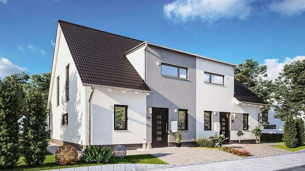 Viel Wohnraum für die ganze Familie - Hier kann man leben und sich wohlfühlen - im Doppelhaus Duett 125 fehlt es an nichts! Ein offener, heller Wohn- und Essbereich ist der Mittelpunkt des Hauses. Hier trifft sich die Familie zum gemeinsamen Frühstücken oder für gemütliche TV-Abende. Auch in der geräumigen Küche gibt es eine kleine Essecke, von der aus beim Kochen zugeschaut werden kann. Ein Highlight ist der separate Garderobenbereich, der im Flur für Ordnung sorgt.