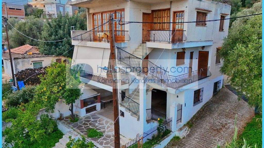 In Alt- Epidaurus steht ein freistehendes Haus mit 216 m² Wohnfläche zum Verkauf. Das Haus erstreckt sich über drei Etagen mit je 72 m² Wohnfläche und befindet sich auf einem 400 m² großen, amphitheaterförmigen Grundstück.