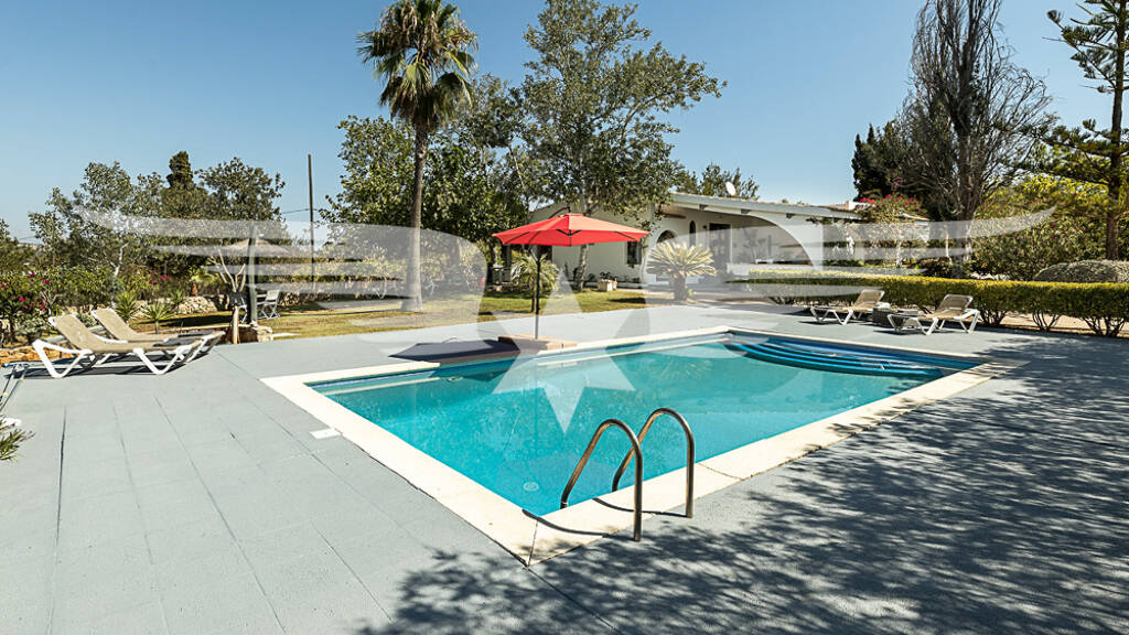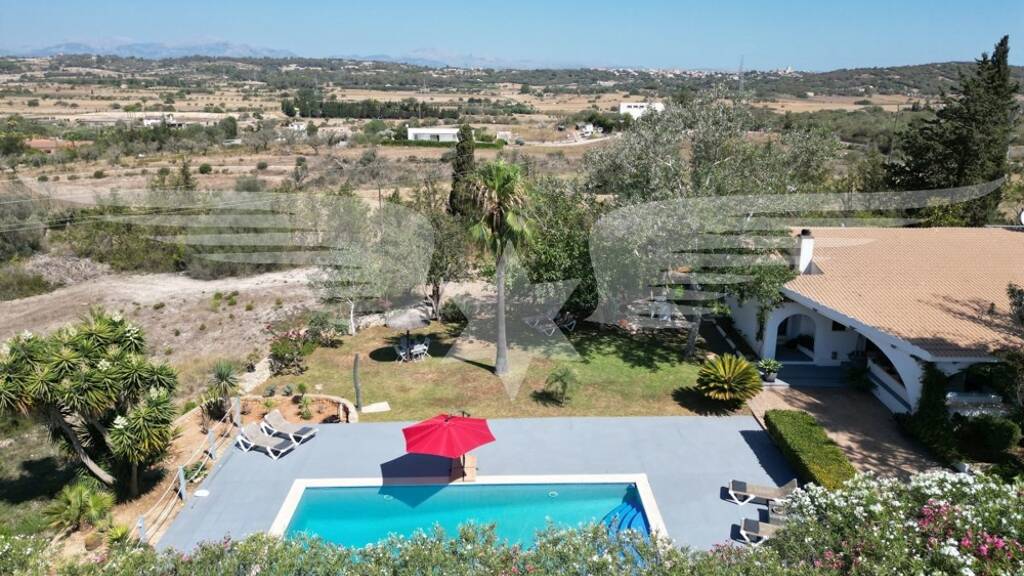 Das Highlight des Anwesens ist die große überdachte Veranda von ca. 60qm, die das ganze Jahr einen atemberaubenden über den Garten und den 10x5 Meter großen Swimmingpool, bis hin zur weiten, romantischen Landschaft von Mallorcas Inselmitte.