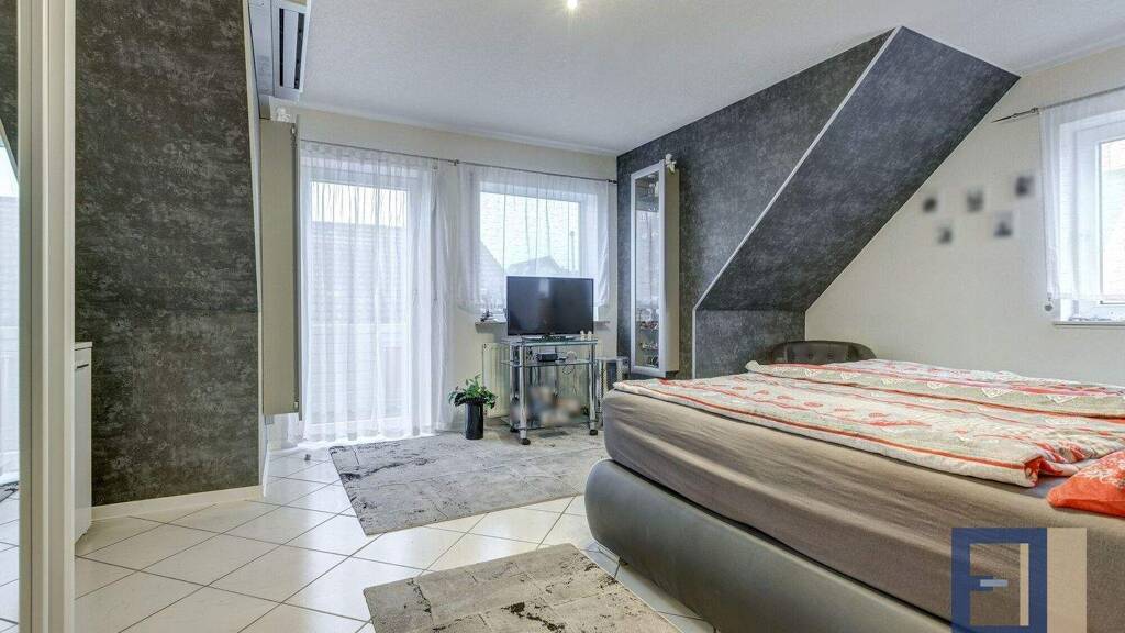 Die Wohnung verfügt über drei Schlafzimmer, zwei Südost-Balkone, eine Einbauküche, eine integrierte Hausbar, Klimaanlagen, elektrische Rollläden, einen Kellerraum, einen Fahrradkeller sowie zwei Stellplätze und weitere Sonderausstattungen. Sie liegt im Ober- und Dachgeschoss eines ansprechenden Fünfparteienhauses aus dem Baujahr 1994, errichtet auf einem 428 m² großen Grundstück in ruhiger Wohnlage.