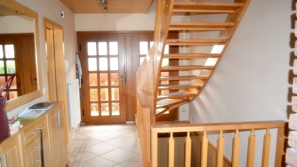 Gepflegtes Einfamilienhaus mit ca. 225qm Gesamtfläche verteilt über 3 Ebenen. Die Immobilie wurde 1999 in Fertigteilbauweise mit Vollsteinverklinkerung von der Firma Streif erbaut. Über ein paar Stufen gelangt man in den Eingangsbereich. Von hier sind alle Räume des Erdgeschosses zugänglich. Die geräumige Küche ist mit einer Einbauküche mit Markeneinbaugeräten und Abluft ausgestattet. Sie bietet jede Menge Stauraum für Geschirr, Töpfe und Co in den zahlreichen Schränken, zudem ist Platz für gemeinsames Arbeiten an den großen Arbeitsflächen gegeben. Platz für einen Esstisch ist vorhanden. Der anliegende Wohn- und Essbereich ist über die Küche sowie vom Flur aus zugänglich. Hier sorgt der hochwertige gemauerte Kamin für ein angenehmes Wohnambiente. Zugang zur anliegenden Terrasse und dem Garten ist vom Wohnbereich möglich. Ein innenliegendes Duschbad mit direktem Zugang zum Saunahaus und Austritt zum Garten sowie ein kleineres Zimmer, welches optimal als Gästezimmer oder Büro nutzbar ist, befinden sich auf gleicher Ebene. Eine Treppe vom Eingangsbereich führt in das Obergeschoss. Hier sind 3 weitere Zimmer sowie das Hauptbadezimmer gelegen. Das Bad bietet Platz für die ganze Familie. Ausgestattet mit Wanne, separater Dusche, Doppelwaschtisch, Bidet und WC ist hier kein morgendliches Warten nötig. Die Immobilie ist voll unterkellert. Die vorhandene Deckenhöhe von ca. 2,30m bietet auch hier Wohnraumqualität. Ein großes, mit Tageslicht versorgtes, Zimmer kann optimal als Jugend- oder Schlafzimmer genutzt werden. Ein Duschbad sowie ein großer Hobbyraum und der Heizungsraum sind ebenfalls im Untergeschoss gelegen. Ein separater Außenzugang ist vorhanden. Der Garten ist hauptsächlich mit Rasen angelegt, welcher von Gemüse- und Kräuterbeeten umrandet wird. Ein einbetonierter Stahlwannenpool, ein Baumhaus sowie zwei kleine Holzgerätehäuschen runden das Gesamtbild ab. Das Grundstück besteht aus 2 Flurstücken. Eine rechtliche Teilung mit Anlegung in zwei Grundbücher ist bereits erfolgt. Der Gartenbereich beträgt 578qm und kann mit einem Einfamilienhaus mit bis zu 1,5 Vollgeschossen separat bebaut werden. Somit hat der Erwerber bei dieser Immobilie verschiedene Möglichkeiten vom Mehrgenerationswohnen bis hin zum Weiterverkauf des Baulandes.