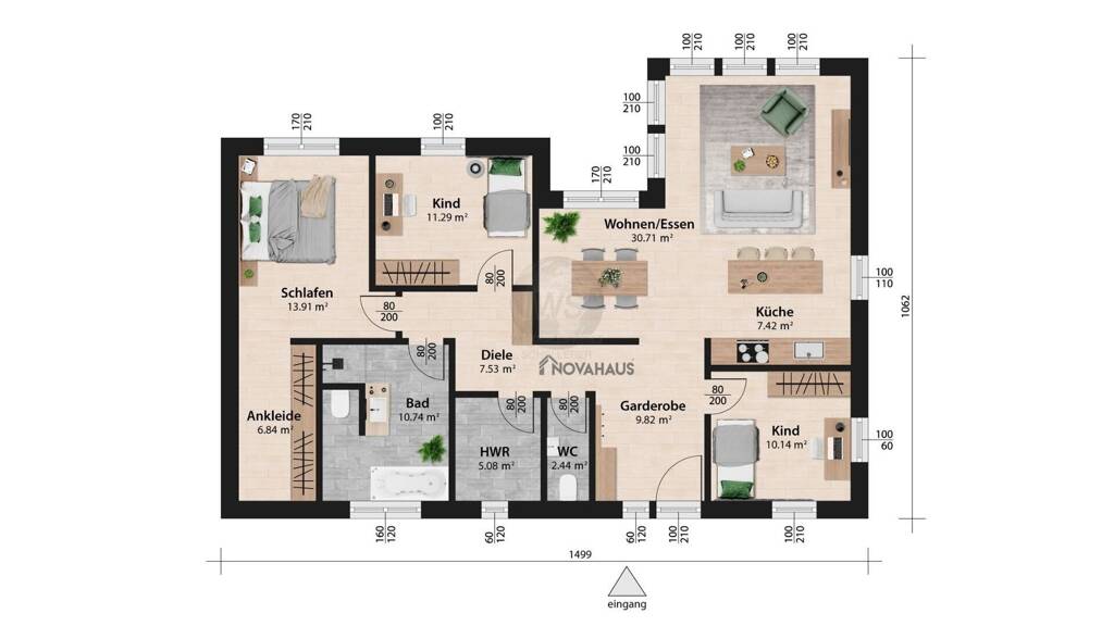 Die Raumaufteilung kann natürlich auf Ihren Wunsch umgeplant werden.