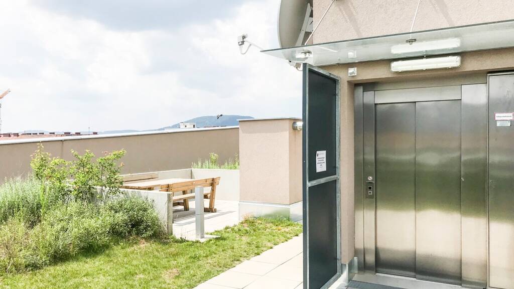 Dieses charmante Wohngebäude verfügt über insgesamt 6 Etagen. Im obersten Stockwerk befindet sich ein allgemeiner weitläufiger Dachgarten für alle Bewohner des Hauses und im Erdgeschoss finden Sie einen Kleinkinderspielplatz sowie einen Fahrrad- und Kinderwagenabstellraum.