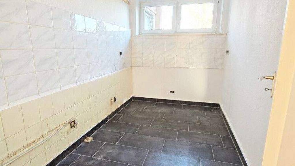Die separate Küche wird ohne Einbauküche übergeben und lässt Raum für individuelle Gestaltung. Das Badezimmer mit Dusche fügt sich funktional in das Gesamtbild ein.