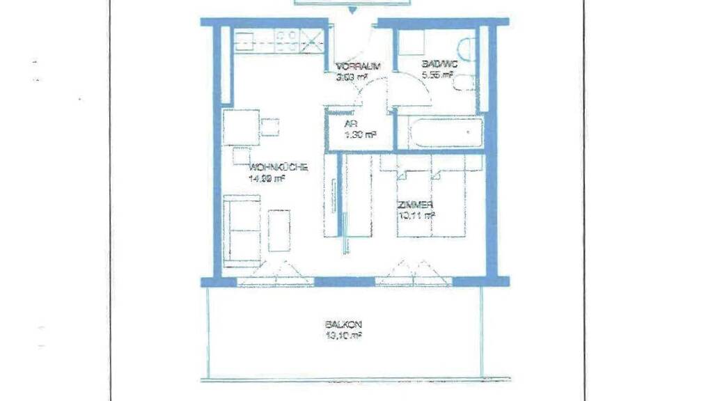 Tiefgarage vorhanden, Ost-Balkon/Terrasse, Nutzfläche: 34,98 m², Anzahl der Badezimmer: 1, Anzahl der separaten WCs: 1, Anzahl Balkone: 1