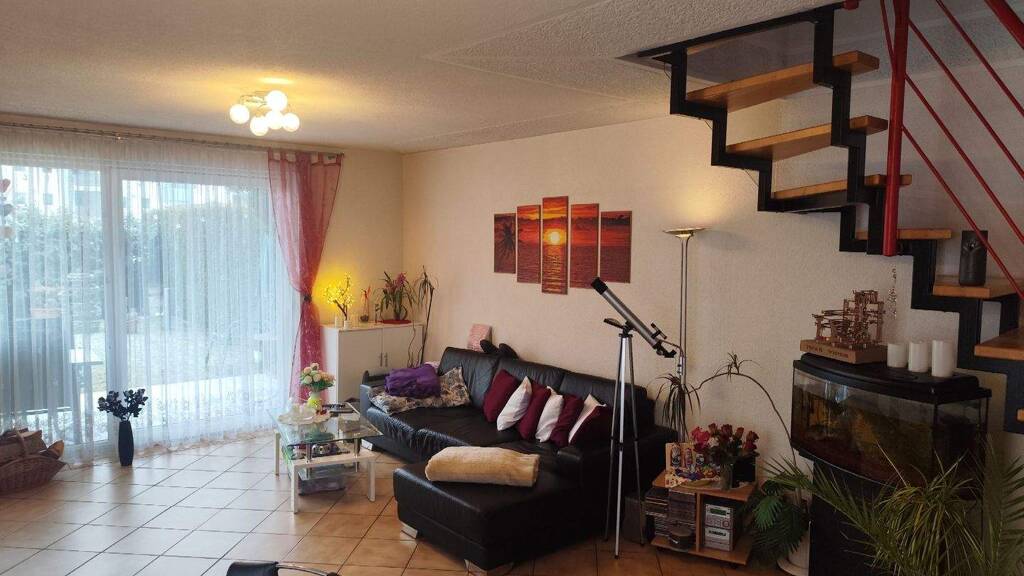Zur Ausstattung gehören ein Badezimmer sowie ein separates Gäste-WC, eine Einbauküche, Balkon und Terrasse sowie ein Kamin, der für eine angenehme Wohnatmosphäre sorgt. Eine Fußbodenheizung im Erdgeschoss und im Bad erhöht den Wohnkomfort zusätzlich.