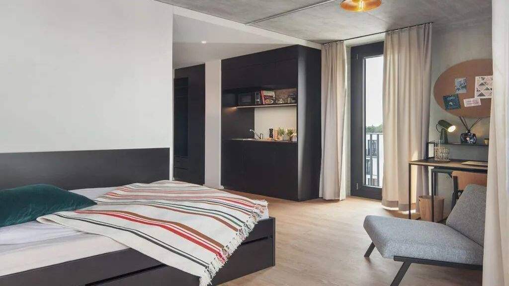 Jedes unserer 22m2 großen Deluxe Patio & Balcony Apartments ist ausgestattet mit  hochwertigen & maßangefertigten Möbeln. Unter Anderem findest du in deinem Apartment ein Einzelbett (90x200 cm), einen Kleiderschrank, einen Schreib- sowie Esstisch, große Lärmschutzfenster mit Ausgang zu deinem Balkon, eine voll funktionsfähige Küche sowie dein eigenes Badezimmer mit Dusche.